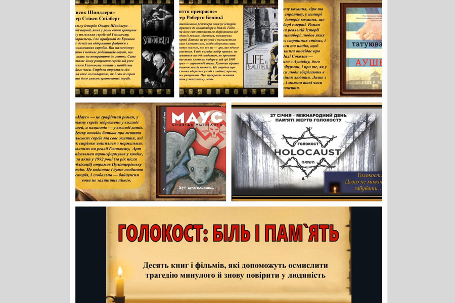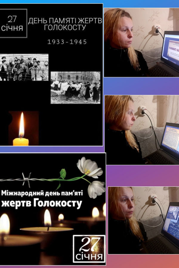 As part of the Holocaust Remembrance Day, educators of the Higher Secondary Educational Service "Kadiivka Pedagogical Professional College of LTSNU were offered to watch an educational video clip "Holocaust: Pain and Memory", initiated and developed by the student council of the college. The video presents literary and video (feature films) sources with brief annotations that will help to comprehend the tragedy of World War II and to believe in humanity again. In addition, students got acquainted with information about the celebration of this memorable event from the video material "A Day in History. Holocaust Remembrance Day" at the link: https://youtu.be/bnRyRpLoGnw
