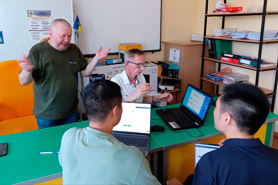 Despite abnormally hot weather and lack of continuous power supply, staff of the Educational and Scientific Institute of Mathematics and Information Technologies (Hennadii MOHYLNYI, Mykola SEMENOV), the Institute of International Education (Iryna MYHOVYCH), and the International Relations Office (Liudmyla OVCHAROVA), are currently working with foreign students of the second (Master's) level, who arrived at LTSNU for offline training stage, demonstrating a high level of professionalism in working with foreign citizens and devotion to teaching.