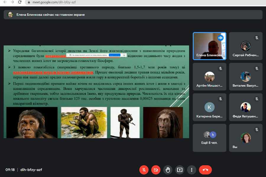 At the end of the seminar, Olena Igorivna spoke about the peculiarities of human evolution, the relationship between the human and the environment, and the influence of human on the environment in order to satisfy their own needs.