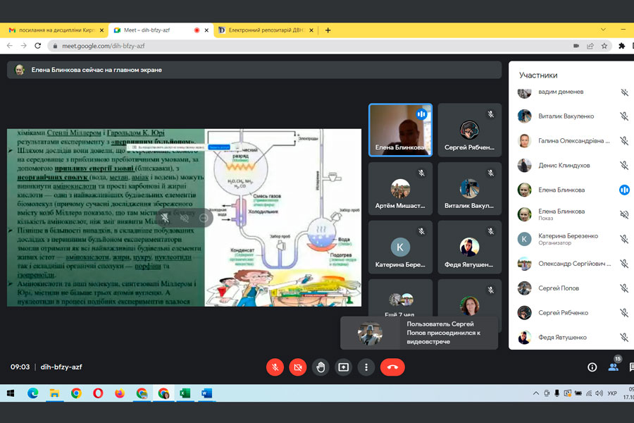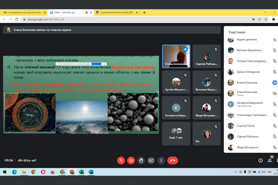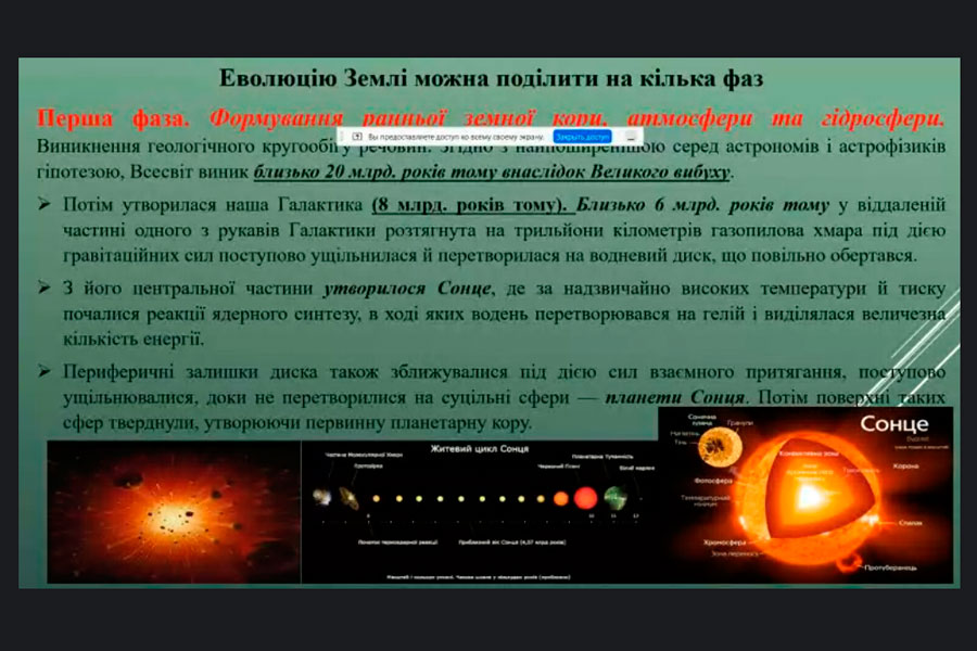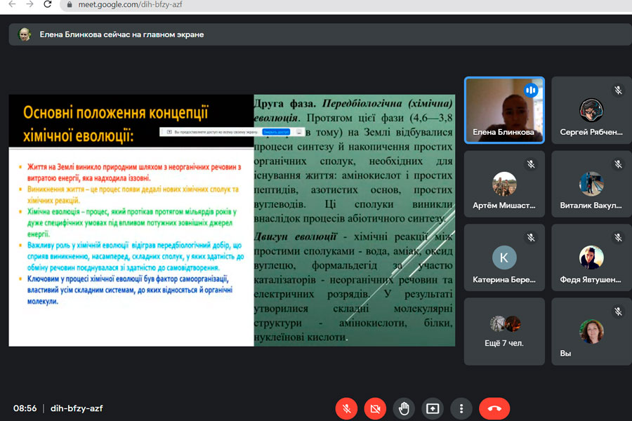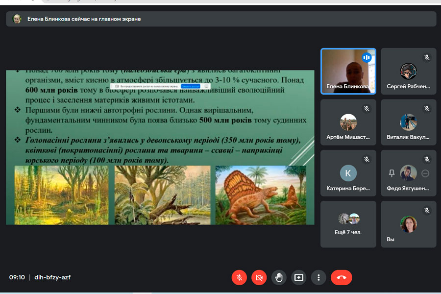 During the meeting, Mrs. Olena spoke about scientific experiments related to the chemical theory of evolution "primordial broth", biological evolution, the periods of appearance of different types of living organisms and the processes of inhabiting the Earth. Emphasis was placed on clarifying issues related to the effects of factors that influenced the processes of the appearance and disappearance of living organisms on our planet.