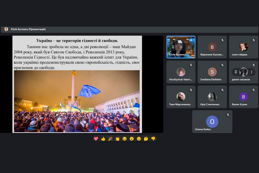 During the online meeting, the employees of the directorate, together with the students of the Educational and Research Institute of Business and Management, recalled the history of the holiday and at the same time the historical events of the Orange Revolution of 2004 and the Revolution of Dignity of 2013. A minute of silence was held to honor the fallen Heavenly Hundred Heroes, who at the cost of their own lives stood up to defend democratic values and the European choice of our people.