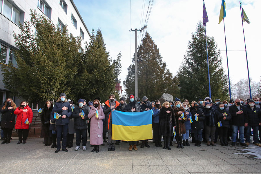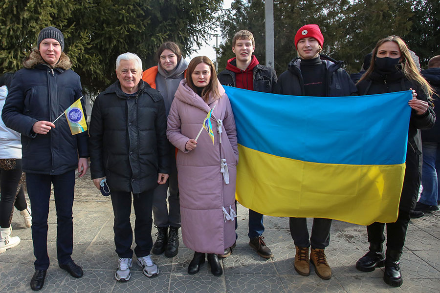 Ukraine is our home, which we can only protect by uniting. Today, the university staff, together with the entire state, have spiritually reunited for the sake of the prosperity of a single independent democratic powerful country, a reliable guarantee of the well-being and happy life of its people. And while we are together, we are strong and only together we can overcome any danger. Ukraine is united!