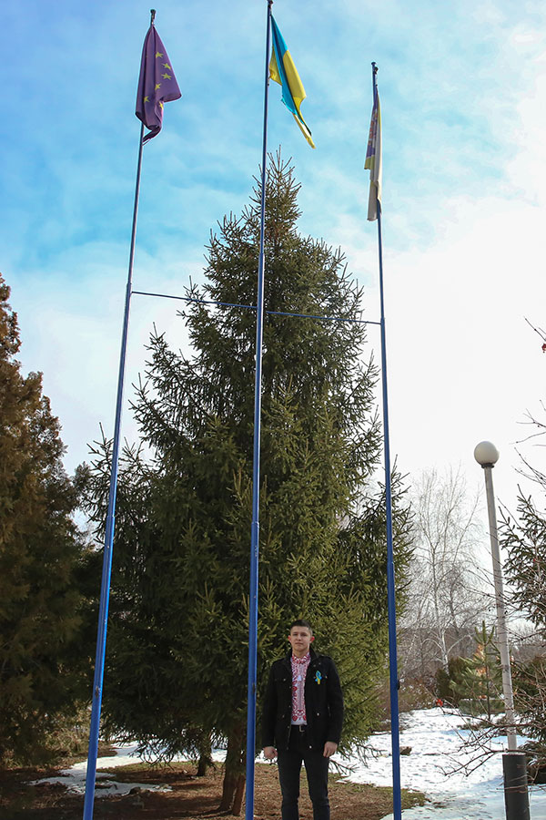 At 10:00 a.m., our staff and students with blue and yellow ribbons gathered at the university in compliance with all quarantine requirements. The anthem of Ukraine was solemnly sounded and the national flag was raised.