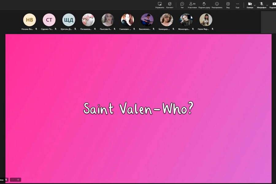 The event helped the students to improve and deepen their knowledge of a foreign language (English). The future teachers immersed themselves in the atmosphere of the history of this holiday in Europe; in particular, they sang modern English songs about love, looked for analogs of English proverbs and sayings about love in the Ukrainian language, took an active part in discussing issues of love in various areas of our lives and signed “valentine cards” for the closest person in English, received a lot of positive emotions and expressed a desire to continue the practice of language initiatives.