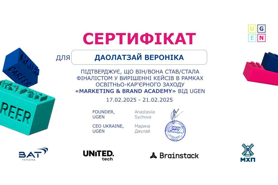 The student team was called "Traveling Cats" ENTERED THE FINAL of the competition, demonstrating a high level of preparation and creativity in solving marketing problems. The students received certificates of finalists of the competition.