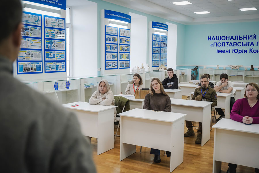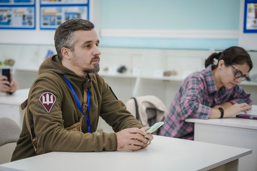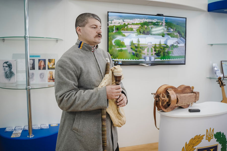 Participants of the military culture forum "Steel Word" had the opportunity to listen to the lecture "Ukrainian folk instruments in the context of the armed defense of Ukraine as a cultural front against the enemy." It was given by Nazar Bozhinskyi, candidate of architecture, associate professor of the Design Department of the Educational and Research Institute of Arts of LTSNU.