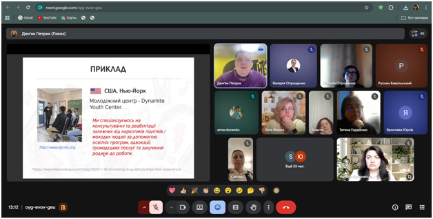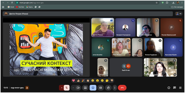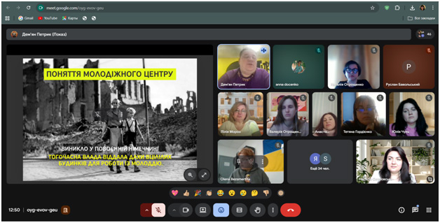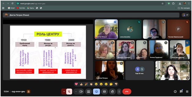 During the guest lecture, the speaker highlighted current approaches to the formation and implementation of youth policy in Ukraine, outlined the role of youth centers as important institutions for the development of youth initiatives and civic activism. Considerable attention was paid to the issues of effective management of youth centers, the features of the development and implementation of youth projects, as well as the possibilities of involving youth in project activities.