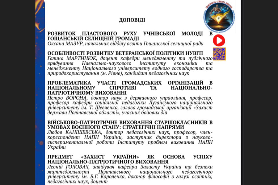 In his meaningful report “The Problem of Participation of Public Organizations in National Resistance and National-Patriotic Education”, Petro Vasylovych Vorona emphasized that national-patriotic education is the basis for the defense of the Ukrainian state.