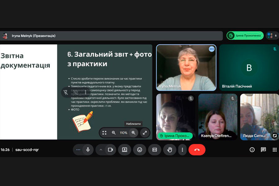 The event was conducted by the head of the practice – associate professor of the Department of Chemistry, Geography and Earth Sciences of the Faculty of Natural and Agrarian Sciences Iryna Melnyk. She introduced future teachers to the key provisions of the work program and outlined strategic tasks for the coming weeks.