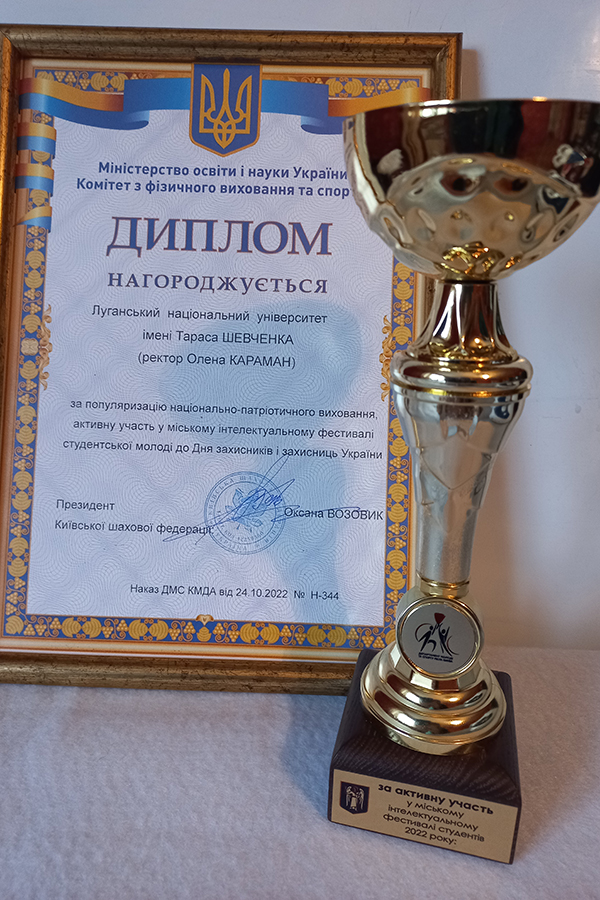 According to the results of the festival Luhansk Taras Shevchenko National University, Rector Olena KARAMAN was awarded a diploma of the Ministry of Education and Science of Ukraine, the Committee of Physical Education and Sports for the popularization of national and patriotic education, active participation in the city's Intellectual Festival of Student Youth.