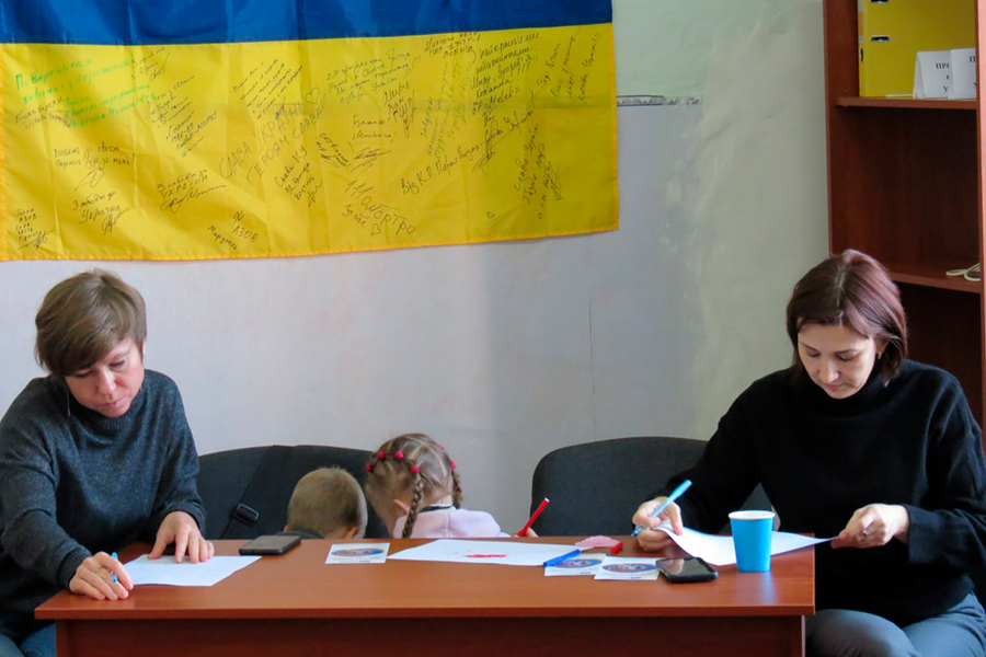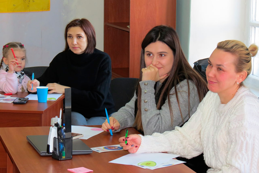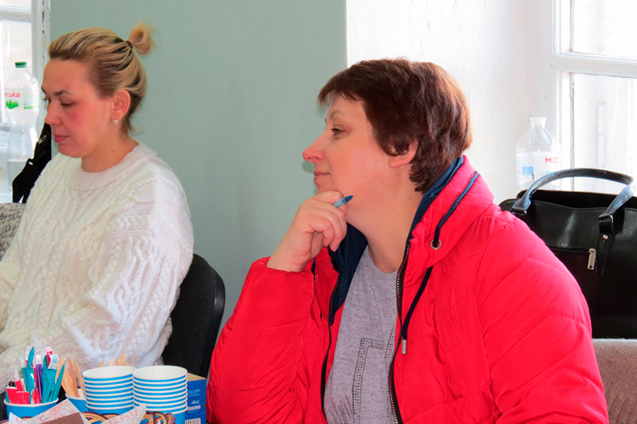 During the meeting, women performed exercises to relieve psycho-emotional tension and stress: hand breathing, square breathing, butterfly hugs (to relieve muscle tension). The participants chose metaphorical cards to find an additional resource in a crisis situation.