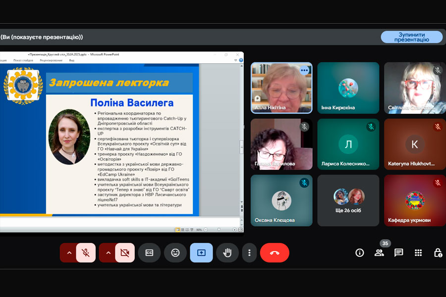 The moderator of the round table, the head of the Ukrainian language department, Alla Nikitina, addressed the participants of the round table with a welcoming speech, noting: “Close cooperation between institutions of general secondary and higher education is becoming a necessary condition for the sustainable development of a modern educational environment focused on the implementation of effective mechanisms and methods of interaction.”