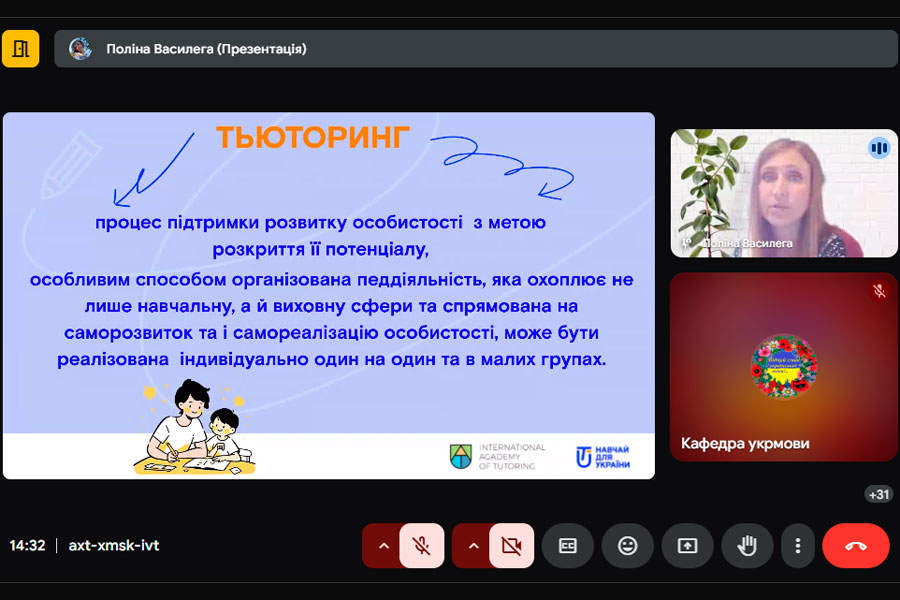 On April 30, 2025, as part of the Science Days, students majoring in A4 Secondary Education (Ukrainian Language and Literature) and invited guests listened to a lecture-master class "Tutoring Approach to Teaching Ukrainian Language and Literature", which was given by external stakeholder Polina Vasileha - Deputy Director for Educational Work, Ukrainian Language and Literature Teacher at Lysychansky Lyceum No. 17, Severodonetsk District, Luhansk Region, Regional Coordinator for the Implementation of the Tutoring Cutch-Up in the Dnipropetrovsk Region, Certified Tutor and Supervisor of the All-Ukrainian Project from the NGO "Teach for Ukraine". The lecturer clarified the issue of the importance of tutoring in modern language and literature education, the role of the tutor in the formation of the personality of the student, demonstrated the practical application of the main tutoring tools, involving the audience in completing the tasks.