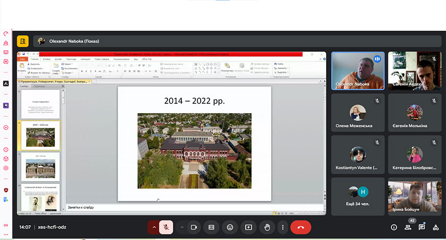 Oleksandr Naboka told the audience about the significant events for our university: from its foundation to the present day. He told about the teachers who worked in different periods of the university's existence. The highlight of the lecture was a story about archaeological expeditions to Olbia.