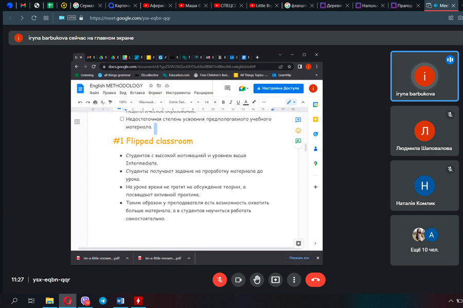 During the master class, a number of technologies and methodological techniques that can be used by the teacher during foreign language learning were considered, such as: Flipped Classroom, Dogme Style, Task-Based Learning, CLIL, Embodied Learning, Inquiry-Based Learning, DME (Direct Method of English) etc. All the listed technologies and techniques have passed the stage of practical approval by the speaker during work in Czech language centers and educational institutions.