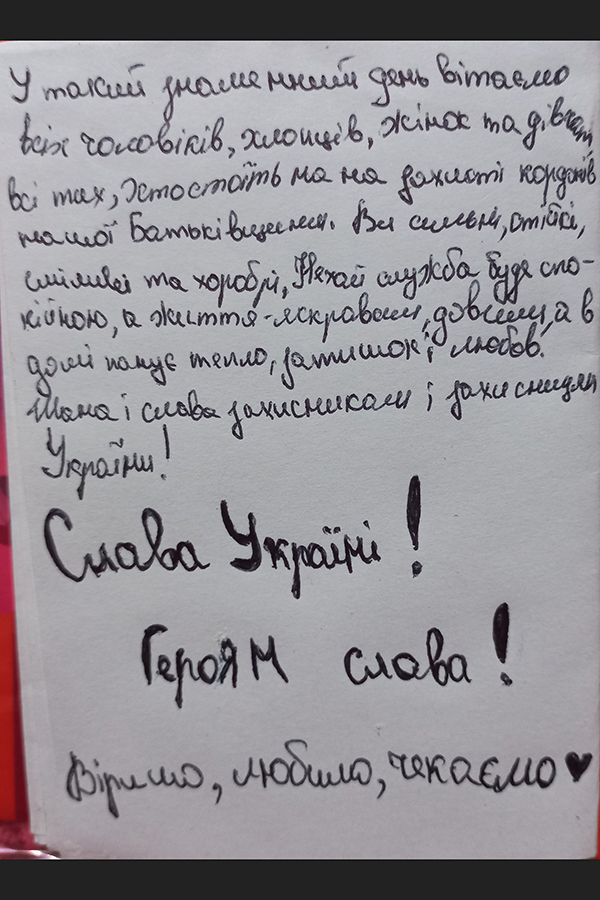 With their postcards, the students conveyed a part of the festive mood to our soldiers, gave them greetings and the warmth of pure hearts with the hope of a victorious end to the war, the return of peace, wished them good health, strength of spirit, endurance, God's blessing, and a Guardian Angel. Thus, they reminded about the powerful support of Ukrainians in the fight against the occupier.