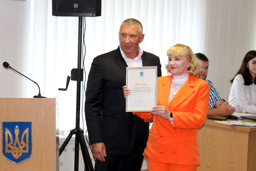 The delegation from the university was represented by: Chairman of the Academic Council Vitalii Kurylo, Rector Olena Karaman, Vice-Rector for Scientific and Pedagogical Work Yaroslava Yurkiv, Vice-Rector for Scientific and Pedagogical Work Anatolii Zhuchok, Acting Vice-Rector for Administrative and Economic Affairs Artur Moldovanov, Chairman of the Trade Union Volodymyr Moroz, Head of the International Relations Department Iryna Myhovych, Head of the Luhansk Regional Branch of the National Olympic Committee of Ukraine Viktor Ostretsov, Head of the Information Technology Department Mykola Semenov, Director of the Educational and Research Institute of Pedagogy and Psychology Viktoria Stepanenko, Director of the Educational and Research Institute of Commerce, Serving Technologies and Tourism Eduard Potapenko, Director of the Educational and Research Institute of Physical Education and Sports Oleksandr Dubovoi, Director of the Separate Structural Subdivision "Lysychansk Pedagogical Professional College" of LTSNU, Dean of the Ukrainian Philology and Journalism Faculty Artem Halych, Deputy Director for Social and Humanitarian Affairs of the ER IPP Vira Pushko.
