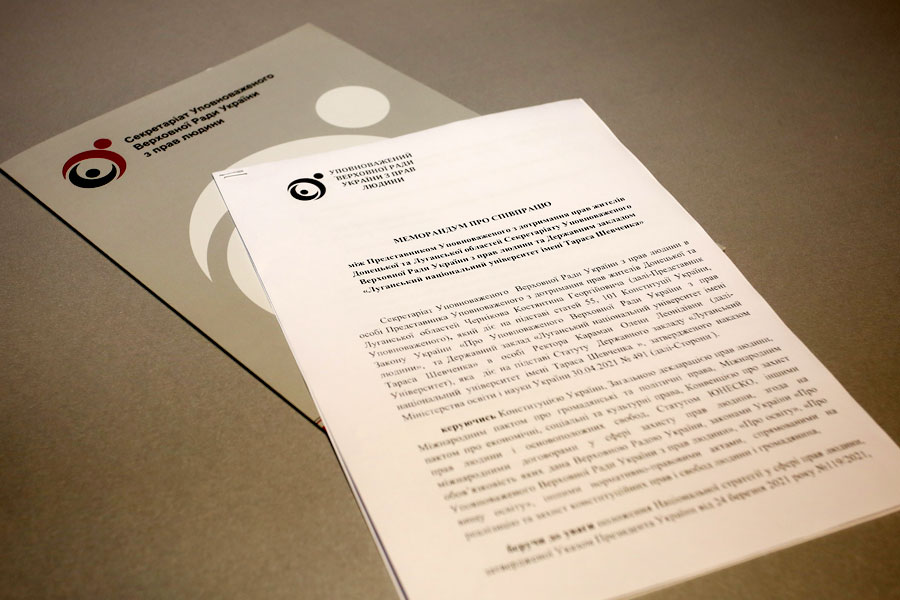 Today, on January 21, 2022, the State Institution "Luhansk Taras Shevchenko National University", represented by Rector Olena Karaman, and the Secretariat of the Commissioner of the Verkhovna Rada of Ukraine, represented by the Representative of the Commissioner for the Observance of the Rights of Residents of Donetsk and Luhansk Regions Konstantin Chernikov signed a memorandum of cooperation in a solemn atmosphere.