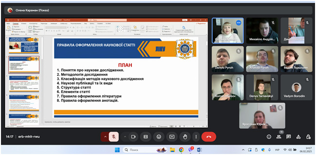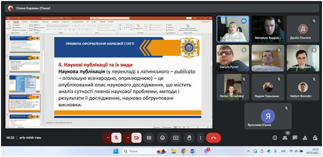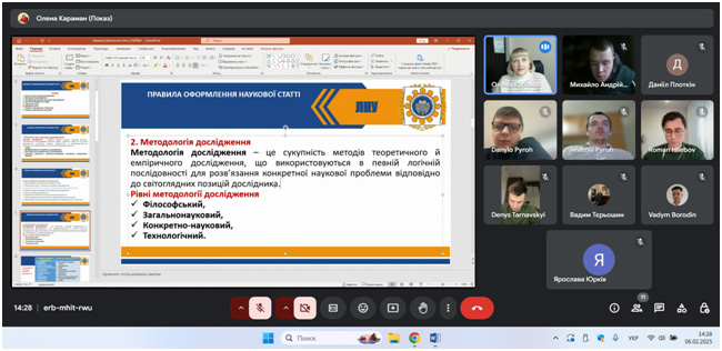 During the event, students had the opportunity to deepen their understanding of the concept of scientific research; explore the research methodology; consider the classification of scientific research methods; determine the specifics and types of scientific publications; reveal the structure, elements and rules for writing a scientific article.