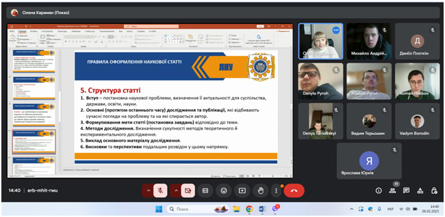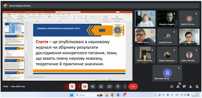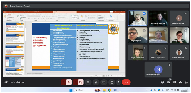 On February 6, 2025, the Social Pedagogy Department held a methodological seminar on the topic "Rules for Writing a Scientific Article Based on Research Results" with first-year students of the third (educational and scientific) level of higher education in specialty 231 "Social Work".