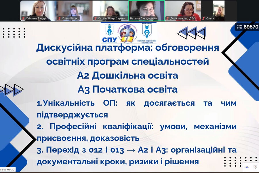 The issue of transition from specialty codes 012 "Preschool Education" to A2 and from 013 "Primary Education" to A3 in accordance with the updated classification of branches of knowledge and specialties aroused considerable interest. The participants discussed the organizational and regulatory aspects of such a transition, possible risks for education seekers and higher education institutions, as well as the need for coordinated actions when updating educational programs and curricula.