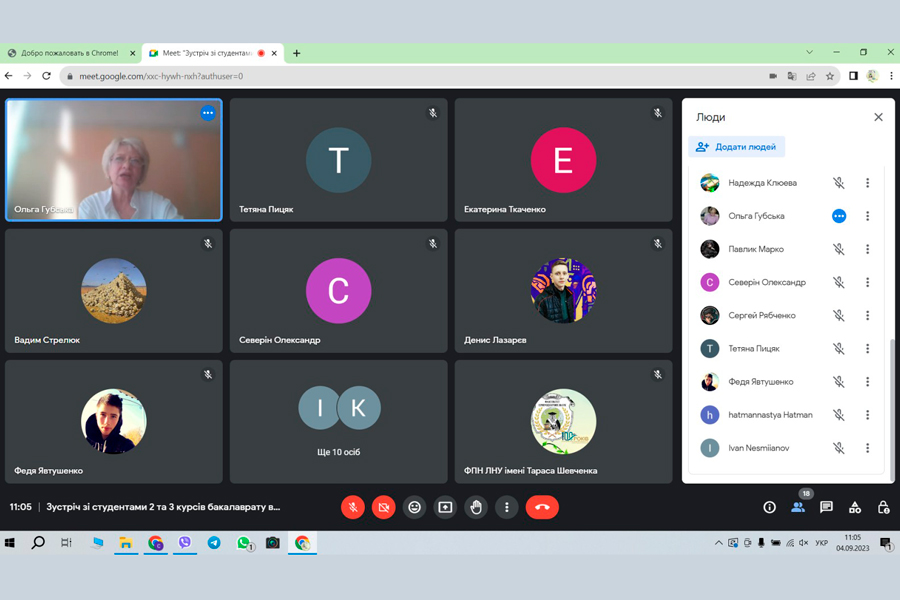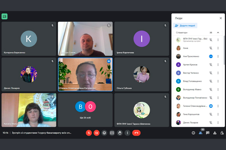 The first-year students were informed about the peculiarities of the organization of the educational process at the university, faculty, and individual specialties. The requirements for the educational process in accordance with the accumulative system of education, the procedure for accrual of academic and social scholarships were clarified. Information was provided on posting materials on the Educational Portal, using Meet, Microsoft Teams, etc. platforms.