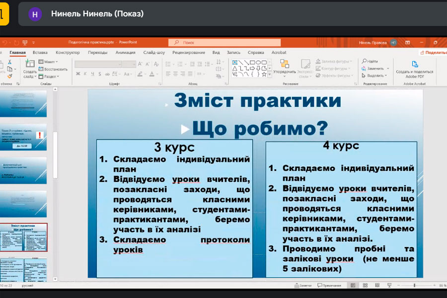 The full-time and part-time students majoring in 013 "Elementary Education", "Elementary Education. Ukrainian Language and Literature" attended an organizational conference on practical training in general educational institutions as future specialists in the field of primary education (in realities of the military state) held by their teachers.