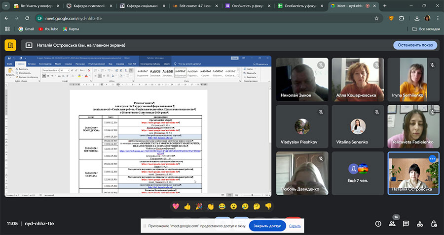 During the session, the focus of attention was focused on the consultation on the preparation of the course work on the theory and practice of social work, as well as on the completion of social support practice.