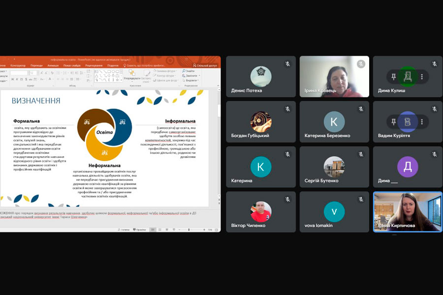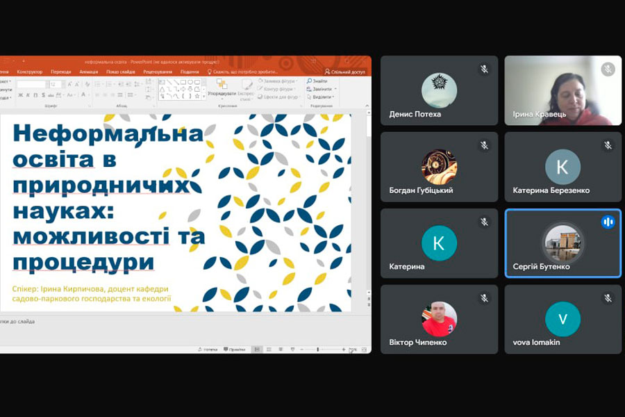 The speaker was Iryna KYRPYCHOVA, Associate Professor of the Department of Landscape Gardening and Ecology, who revealed the key aspects of informal education, its differences from formal education and its benefits for future specialists. The main topics of discussion were:
