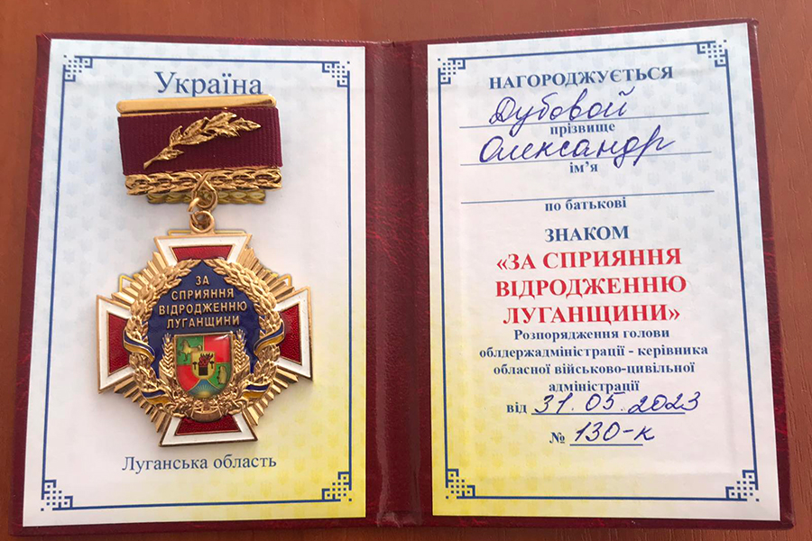 Oleksandr Dubovoi was awarded the badge "For Promoting the Revival of Luhansk Region"