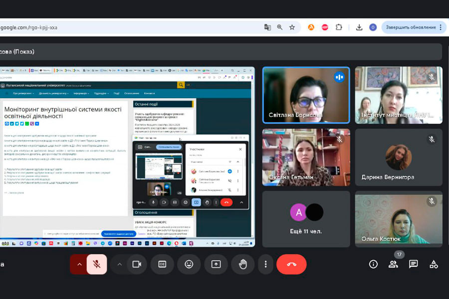 From December 16 to 26, in accordance with the Regulations on the development, approval, updating of the content and closure of educational programs at Luhansk Taras Shevchenko National University, a discussion of educational and professional programs for the Bachelor's and Master's degrees of the specialties in which training is conducted took place at the Educational and Research Institute of Arts.