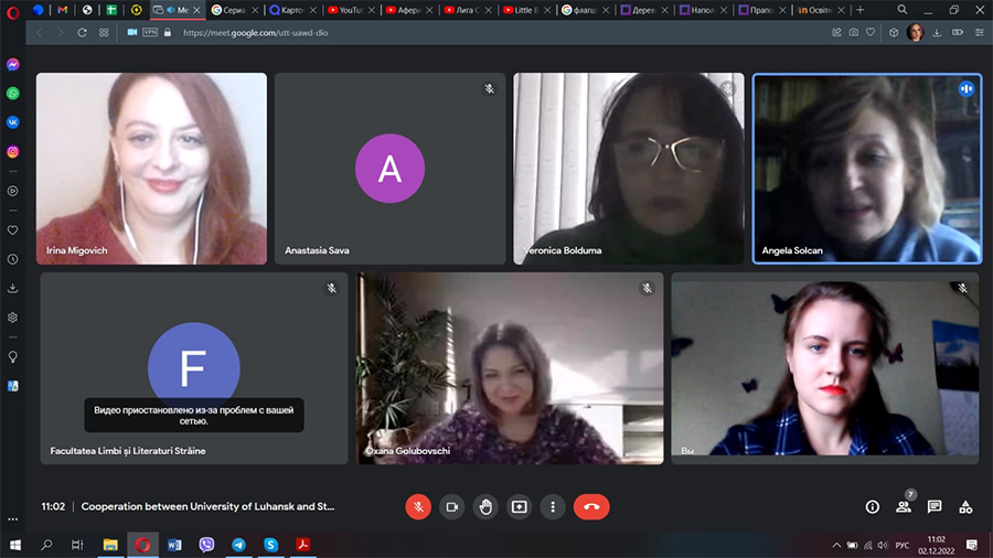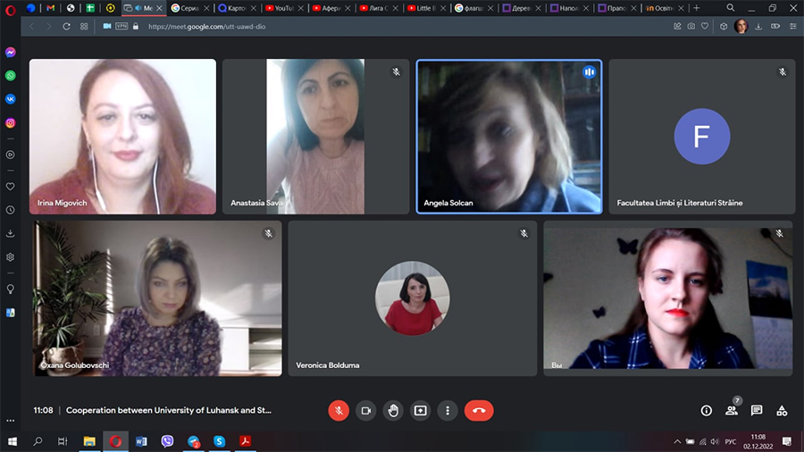 On behalf of Luhansk Taras Shevchenko National University, the meeting was attended by Acting Dean of the Faculty of Foreign Languages, Doctor of Pedagogical Sciences, Professor Iryna V. Myhovych, Vice Dean in charge of Educative Affairs, Liudmyla A. Ovcharova, acting head of the department of Romance and Germanic Philology Olga E. Unina. From the side of the State Ion Kryange Pedagogical University, the meeting was attended by the Dean of the Faculty of Foreign Languages and Literature Angela SOLCAN, Deputy Dean Veronica BOLDUMA, Head of the Department of Romance Philology Anastasia SAVA, Head of the Department of English Philology Oxana GOLUBOVSCHI, Head of the department of Germanic philology Victor CHISELIOV.