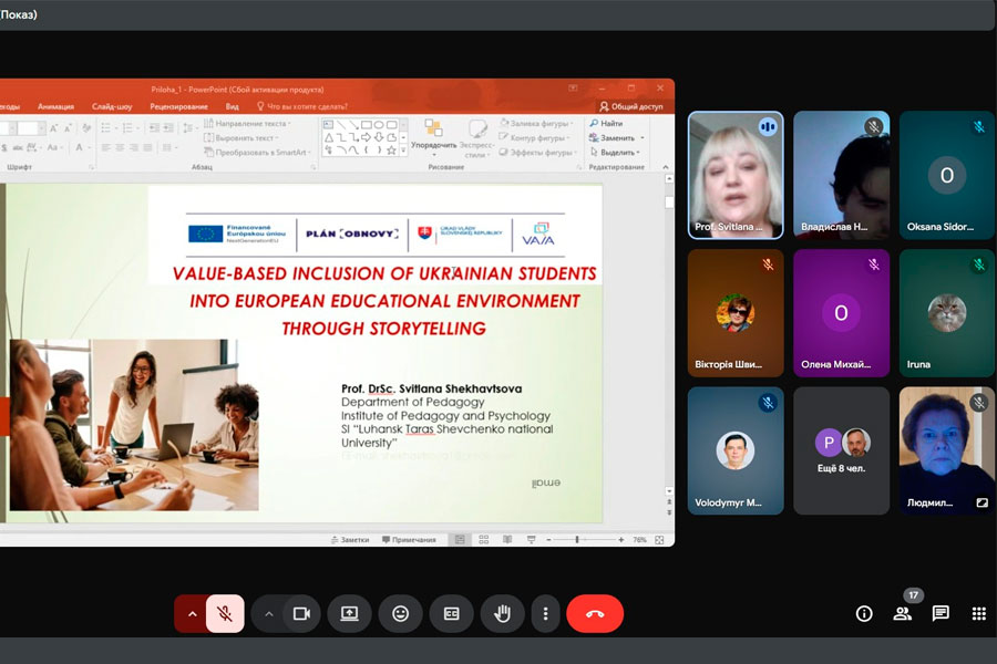 In order to immerse students in the intercultural context of communication, the online event was held in English. The following issues were discussed: understanding the challenges and opportunities associated with the value-based involvement of Ukrainian students in the European educational environment; recommendations for educators on the use of Storytelling technology for intercultural understanding, preservation of Ukrainian identity; practical recommendations for Ukrainian students to support their cultural adaptation and integration into the European educational space. The students were actively involved in discussing the materials of the event.