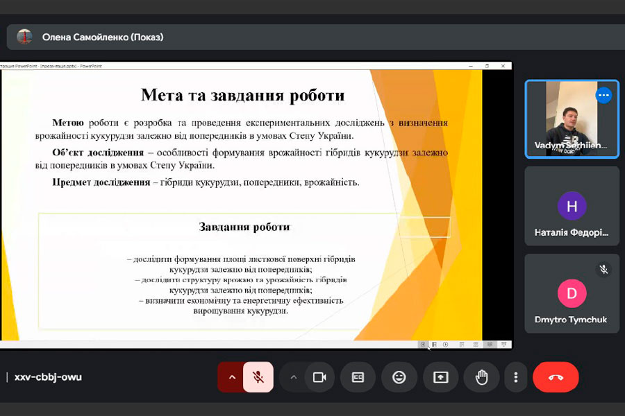 During the presentation of the results of their scientific research, the students carefully substantiated the relevance of the selected topics, revealed the essence of field and laboratory research on the selected topic, analyzed the results. During the discussion of the presentations, the scientific supervisors, teachers of the department focused on certain aspects of the design, presentation of the material; explanations of certain research results and provided advice on improving reports and presentations of works.