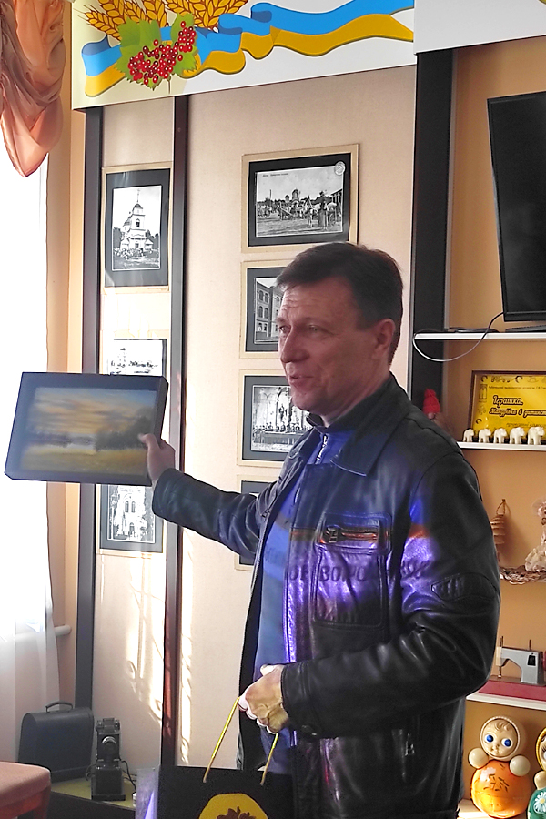 A pleasant surprise was a gift from the famous artist, honorary member of the Union of Artists of Ukraine Oleksandr MIROSHNYCHENKO, who lived in Luhansk Region for 30 years, his original oil painting with landscapes of Lubny Region.