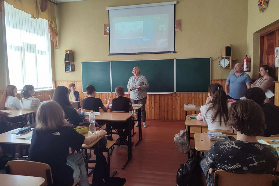 On April 11, in the city of Ohtyrka, Sumy Region, career guidance meetings were held in the 10th and 11th grades of the Borys Antonenko-Davydovych Gymnasium and Lyceum No. 1 and Lyceum No. 3. The educational and research institute of arts (Lyudmila Sokol), the educational and research institute of health care and sports (Roman Pavlov) and the educational and research institute of philology and journalism (Victoriia Dmytrenko) took part in the career guidance visit.