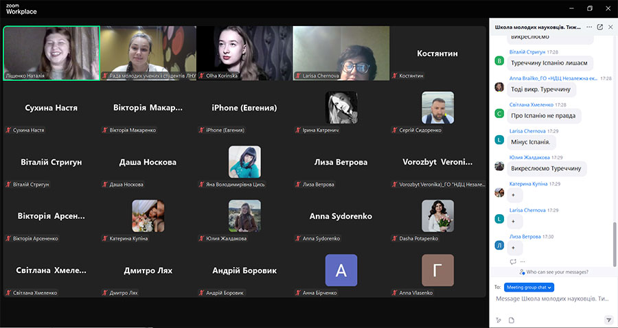 On the fifth day of the second week of study within the School of Young Scientists, a meeting was held with Olha KORINSKA - the head of the Council of Young Scientists and Students of Luhansk Taras Shevchenko National University, a postgraduate student and teacher of the Department of Oriental Philology and Translation of the Educational and Research Institute of Philology and Journalism.