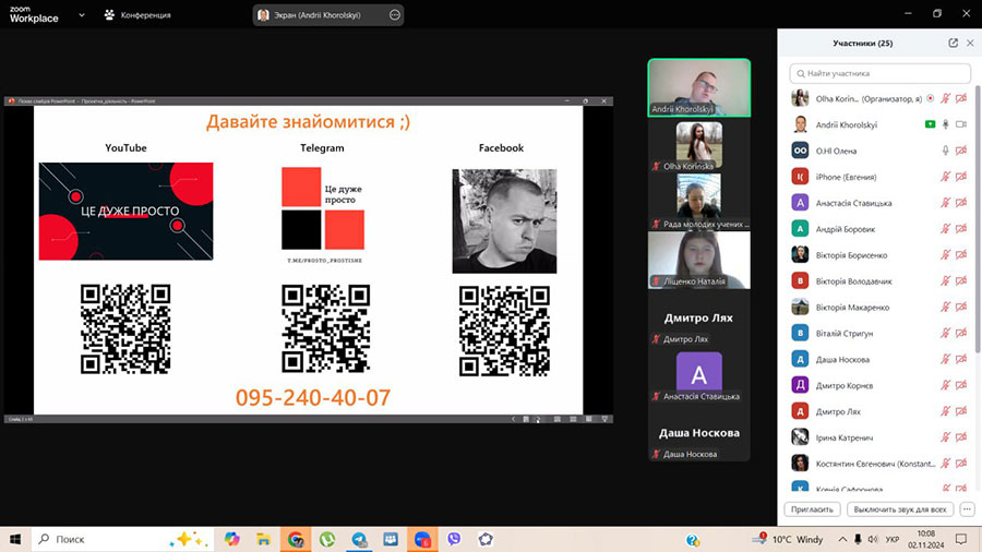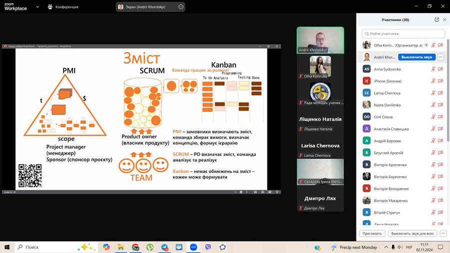 Thanks to deep knowledge and many years of experience in the field of project management, Andrii Khorolskyi revealed to the participants important aspects of effective planning, resource management and achieving results in both scientific and everyday activities. The speaker emphasized the key stages of project implementation, shared tools for their organization and provided practical advice for improving work efficiency.