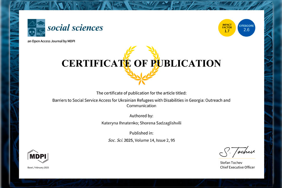 The article of the Associate Professor of the Social Work Department, Educational and Research Institute of Health Care and Sports Kateryna Volodymyrivna Ihnatenko “Barriers to Social Service Access for Ukrainian Refugees with Disabilities in Georgia: Outreach and Communication” was published in the journal Social Science special issues Health and Migration Challenges for Forced Migrations.