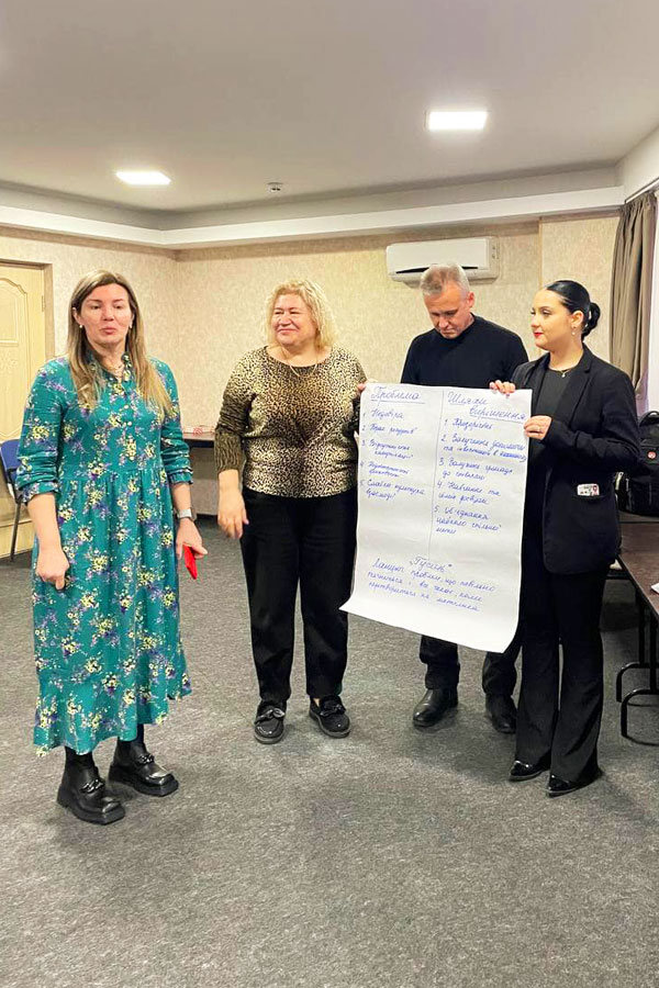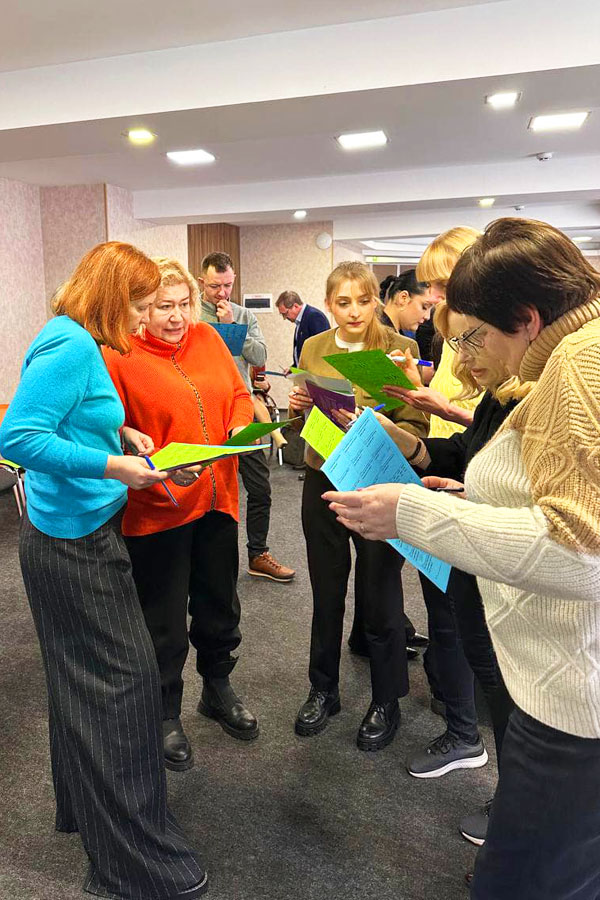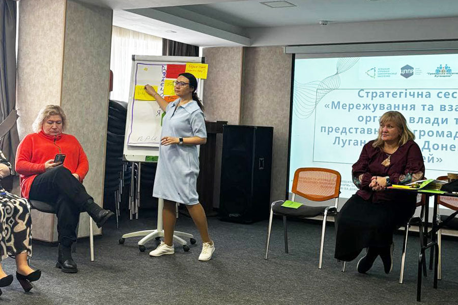 One of the facilitators of the meeting was Kateryna Kotelenets, PhD in Social Sciences, Associate Professor of the Department of Philosophy and Sociology, who introduced exercises that facilitated the establishment of horizontal cooperation. Together with Svitlana Krot, she helped establish dialogue and interaction between representatives of the authorities and the public, which is necessary for their involvement in the processes of institutional renewal, the formation of a network of active communities and the strengthening of their influence on decision-making processes and the formation of a vision of the future of Eastern Ukraine at the state level.