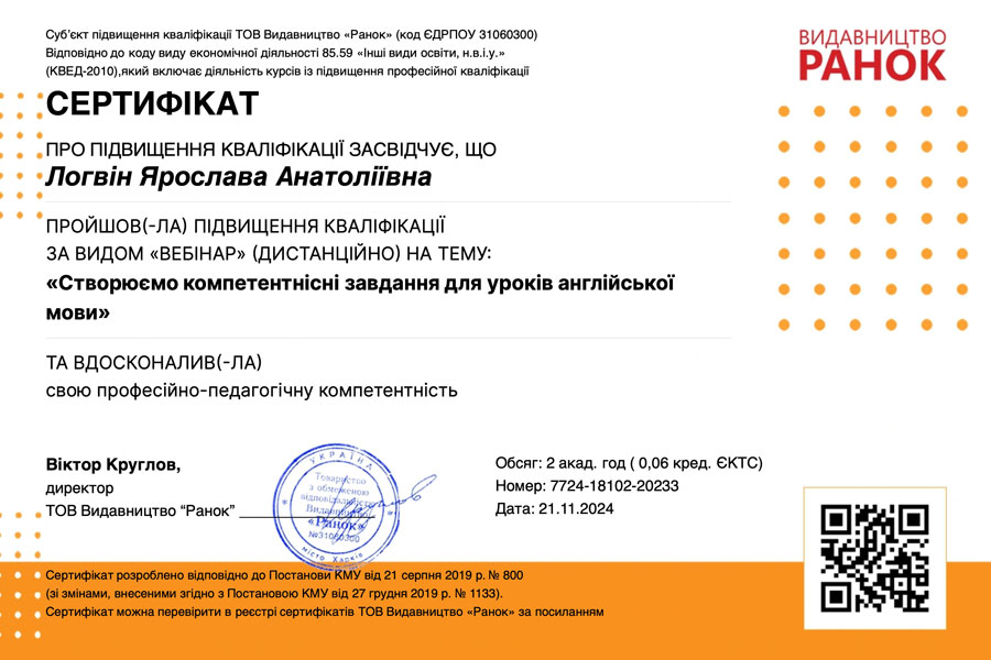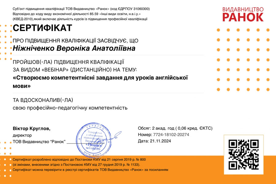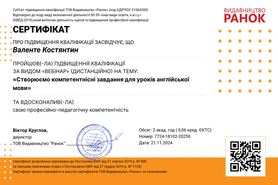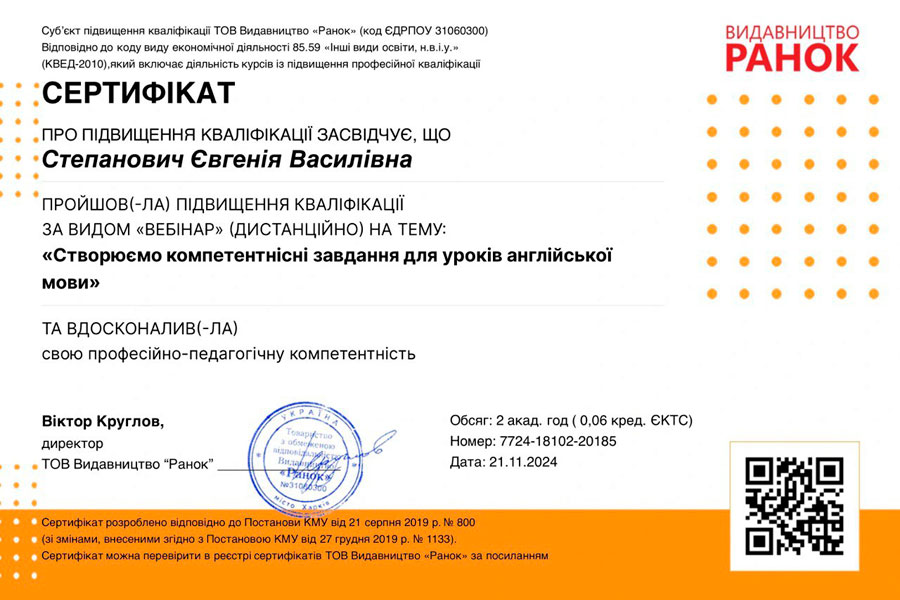 All registered participants who completed the post-webinar quiz received certificates. The Romance & Germanic Philology Department's participation in the Ranok Publishing webinar was a significant step towards improving the educational process and enhancing the effectiveness of foreign language learning.