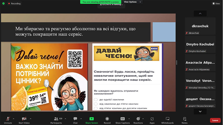 Nataliia Volodymyrivna Omelchenko (Professor of the Department of Commodity Research, Trade Entrepreneurship and Product Expertise of LTSNU, Chair of the Board, Chief Expert of the NGO "Research Center "Independent Expertise") presented a case from the NGO "Research Center "Independent Expertise" , Ph.D., Professor) and focused the attention of those present on the urgent need to protect consumer rights in our country, introduced the acquired experience in consumer rights protection of the public organization headed by her and outlined the tasks of the public community, professionals, students, in particular, commodity experts in the development of a civilized Ukrainian market of goods and services, where trust, responsibility, interaction between consumers, state and business will prevail.
