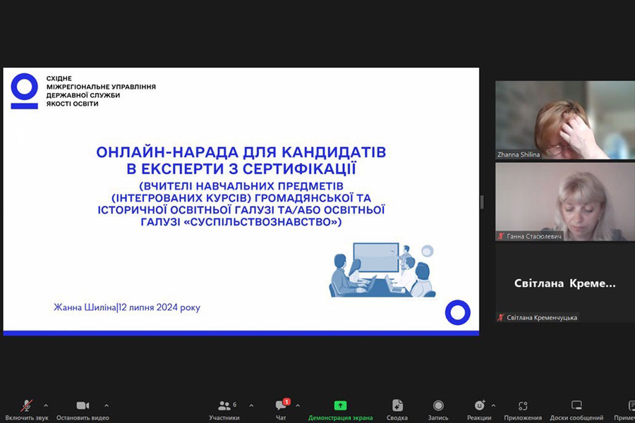 The other day, a meeting was held for candidates for certification experts (teachers of educational subjects (integrated courses) in the civic and historical educational field and/or the educational field "Sociology"), in which the guarantor of the "Sociology" educational program of the first (bachelor's) level of higher education, Doctor of Sociology, Associate Professor of the Department of Philosophy and Sociology Kateryna Kotelenets, took part.