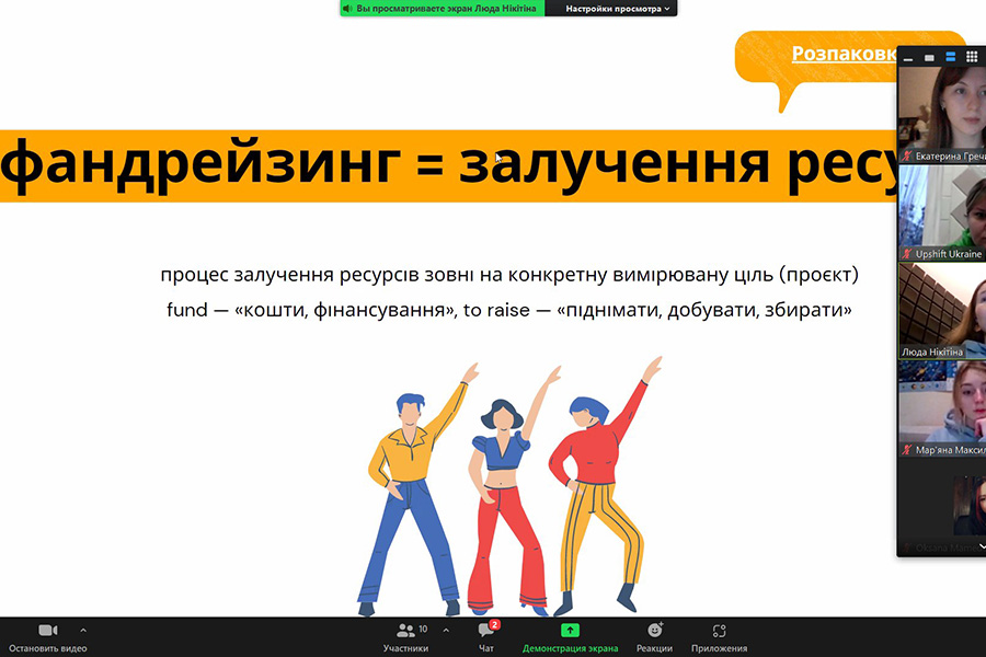 Kateryna Hrechyshkina, Mariana Maksylevych and Valeria Lykhachova, students of the Faculty of Foreign Languages, together with Upshift Ukraine mentor Oksana Husakova, a teacher of the Department of Oriental Languages, continue to participate in the project from the United Nations Children’s Fund (UNICEF). Currently, participants are developing an action plan for their own educational project, which aims to acquaint teachers of secondary education with the latest technologies and opportunities to use them in lessons. Teams learned how fundraising works and how crowdfunding differs from grant writing.
