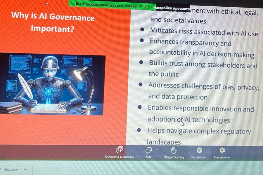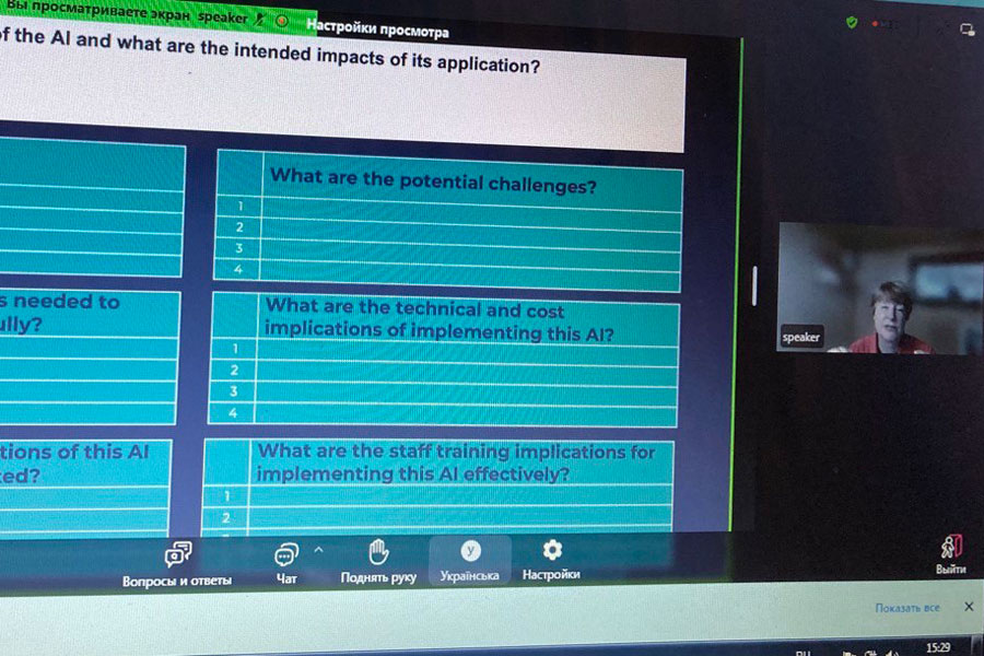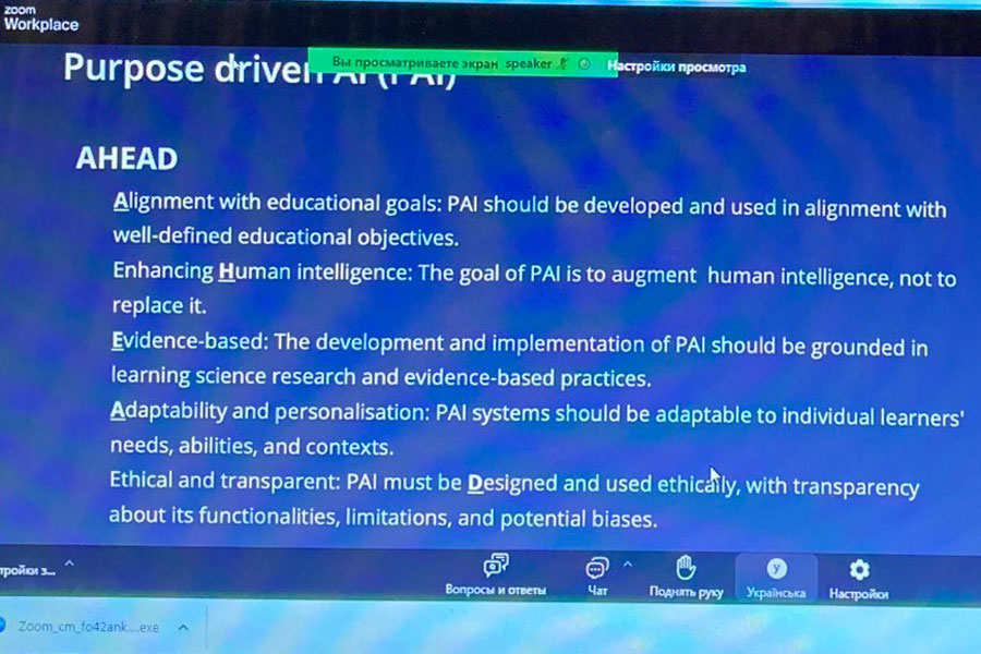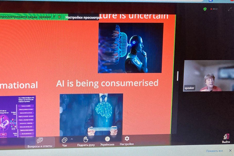 The speaker gave a brief overview of the history of the development of artificial intelligence, emphasized the areas of application in education and gave a brief overview of the challenges associated with it. One of the important theses of the speaker was the recommendation to teach students to develop human intelligence with the help of AI, rather than simplifying their lives.