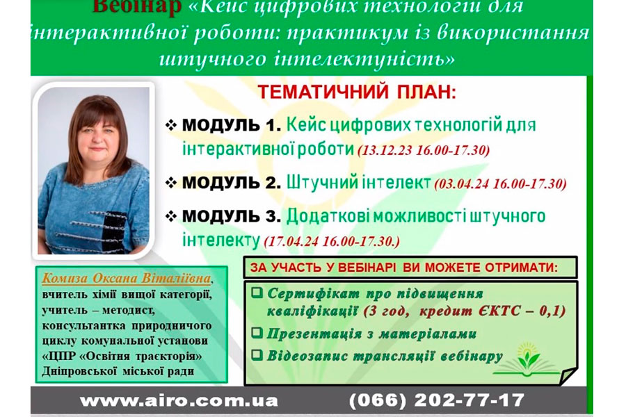 The participants discussed how these tools can enrich the learning experience and contribute to the more effective work of both teachers, students, and teachers and pupils. The webinar revealed new perspectives regarding the use of modern digital technologies in the field of education, in particular, the use of artificial intelligence to create an interactive learning environment.