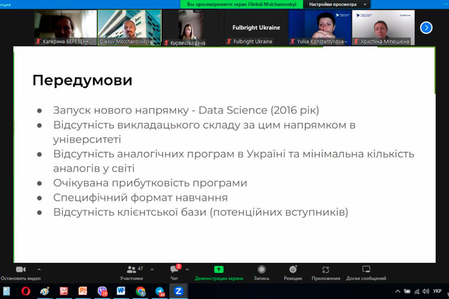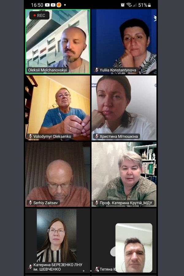 Nataliia Matsai, Dean of the Faculty of Natural Sciences, and teachers of the Department of Landscape Gardening and Ecology, Kateryna Berezenko, Iryna Kyrpychova, Olena Bordiugova, and Serhiy Skakovskyi took part in the webinar of Ukrainian scientists and graduates of the Fulbright Program for representatives of displaced higher education institutions on the topic: "Certification Programs: Rapid Prototyping and Implementation of Innovative Educational Programs", which took place on September 15.