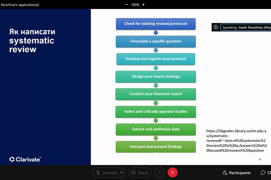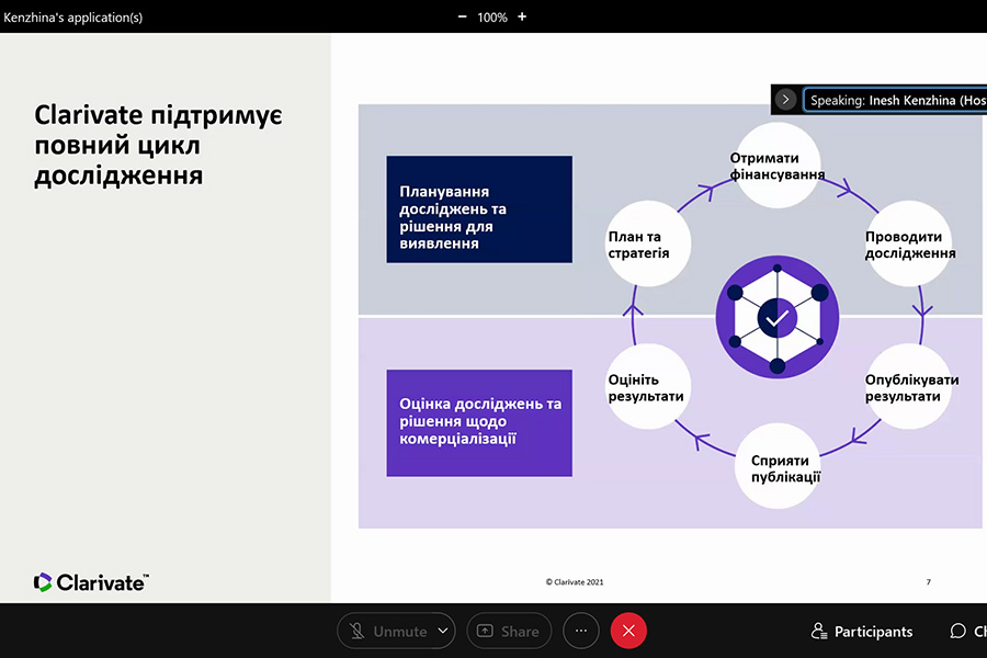 The webinar was conducted by Iryna Tykhonkova, Clarivate Analytics Regional Solutions Consultant (Head Office: London, UK).