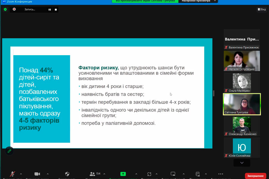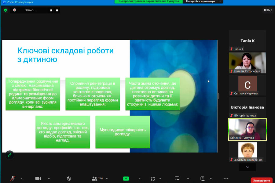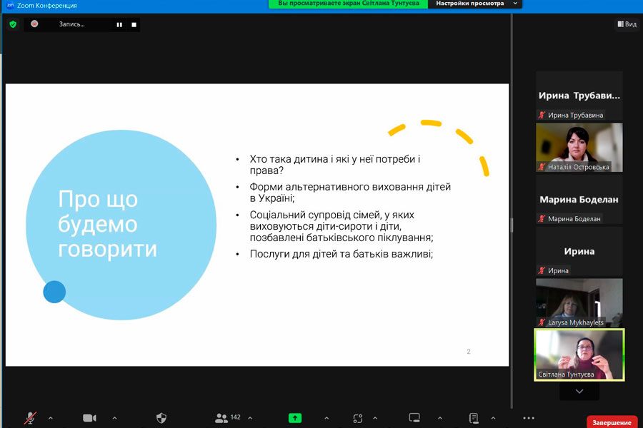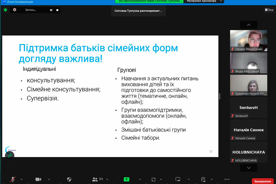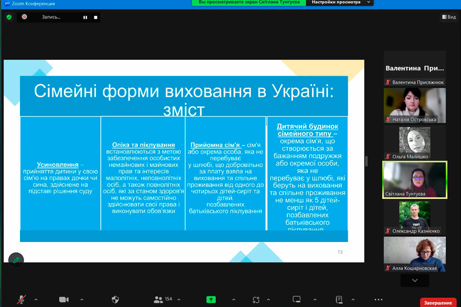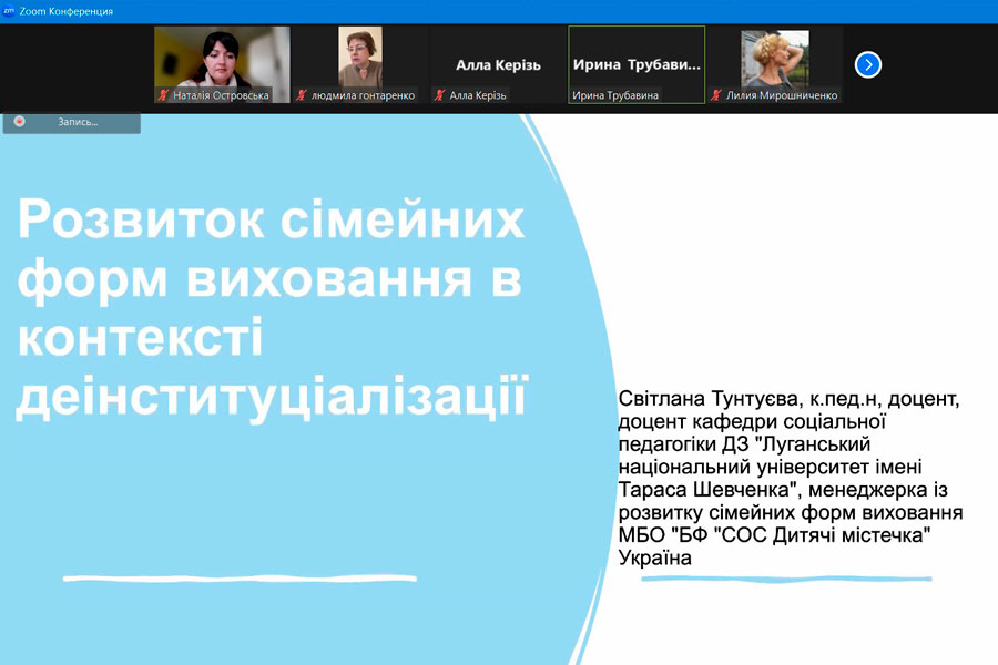 The speaker of the fourth edition of the webinar on the topic: "Development of family forms of education in the context of deinstitutionalization" was Candidate of Pedagogical Sciences, Associate Professor of the Department of Social Pedagogy of the "Luhansk Taras Shevchenko National University", manager of the development of family forms of education of the Children's Educational Institution "SOS Children's Villages" Svitlana Tuntuieva.