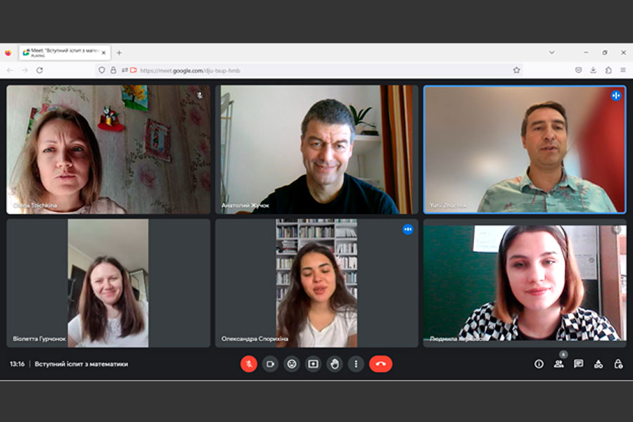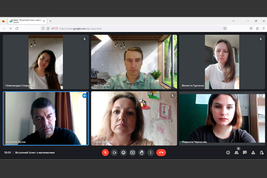 For the first time, two entrants took the entrance exam for studies under the budgetary form of study in specialty 111 "Mathematics". The meeting was held online, with the full examination committee. Anatolii Zhuchok, the head of the commission, made an opening speech and wished success to the winners. Next, applicants chose examination tickets, each of which contained three questions. One and a half hours were given for preparation, during which the entrants were in constant communication.